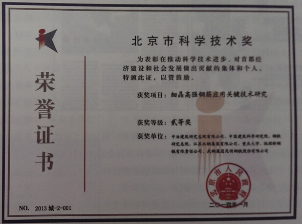 近日,北京市科學(xué)技術(shù)獎(jiǎng)勵(lì)工作辦公室發(fā)布了2013年北京市科學(xué)技術(shù)獎(jiǎng)二等獎(jiǎng)獲獎(jiǎng)項(xiàng)目的公告,由鋼材檢測(cè)中心牽頭的“細(xì)晶高強(qiáng)鋼筋應(yīng)用關(guān)鍵技術(shù)研究”項(xiàng)目榮獲2013年北京市科技進(jìn)步二等獎(jiǎng)。