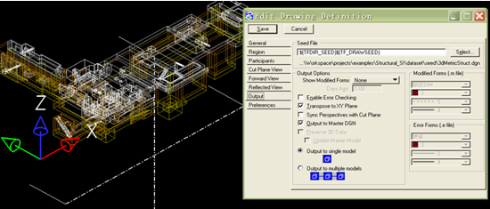 三維軟件Bentley MicroStation Structural最大的優點在于通過設置好剖切定義參數便能自動高效的剖切出平、立、剖面圖。軟件自帶的剖切管理器工具(Drawing Extracting Manager),通過控制系統的參數來控制產生的剖面圖,可以通過設置Drawing Extracting Manager的參數達到想要的任意位置的剖面。