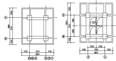 圖2 石灰豎窯底框一層結構平面布置圖 圖3 石灰豎窯底框二層結構平面布置圖