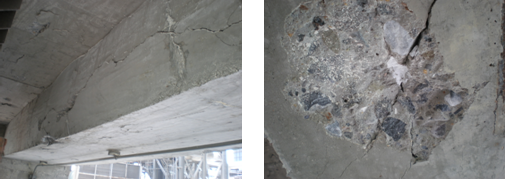 大部分已經發生了化學反應,因此,業主采用鋼梁托換混凝土主梁進行應急房屋安全檢測處理,并對混凝土梁裂縫進行耐久性修復處理,加固后目前使用正常。