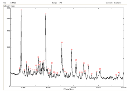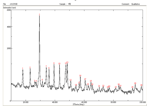 對脹裂源物質,進行X射線衍射分析,粉末中含有大量的